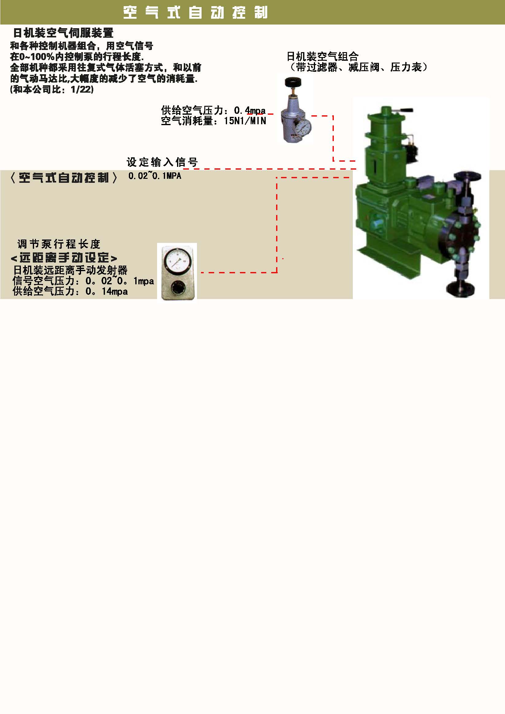 | ●『提高维护性』 追求了综合维护性的提高。 全面采用了密闭·防尘防水构造并且主要部位为滚动轴承,使耐久性大幅度提高。油浴式构造、活塞填 料方式的采用,使日常维护作业控制到了最少。另外,行程长度用数字显示,排气阀和安全阀为一体化 等,极大的提高了维护性。 ●『高精度,高直线控制性、很宽的控制范围』 彻底明确了定量泵所必须的机械装置的结果是,对定量泵来讲,重要的是可以确保在很宽的控制范围中 达到高吐出精度。 泵吐出精度:±0.5%以内(常温水) 行程的长度:0~100%的直线控制 行程长调节范围:1:10 转数调节范围:最大1:10 (行程长、转数调节并用的情况:最大1:100). |
